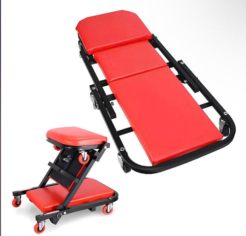 Camilla de mecánico 2 en 1 — 6 ruedas 360° • 100 x 46 cm • Roja